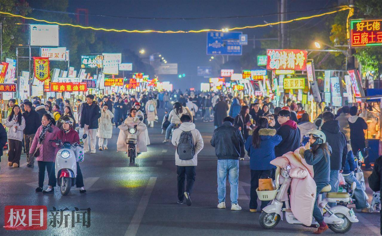 “元旦假期,荆州东门有无人机光影秀,每天晚𰱭时过后,美食街的游客会骤然增多。”长新夜巷美食街张记卤肉摊摊主张冰告诉极目新闻记者,美食街的客流由高校学生、本地市民和外地游客三重叠加形成,品质好、口感好的小吃实现热销很正常。